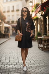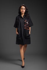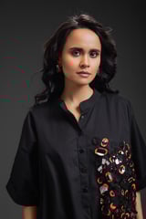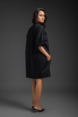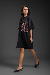 Black Relaxed Fit Mini Dress with Embellished Pocket
