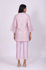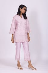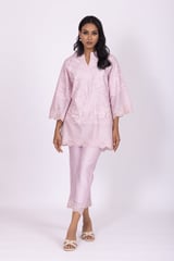 Pink Chanderi Embroidered Short Kurta Set with Pants
