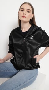 Black Hooded Zip-Up Jacket