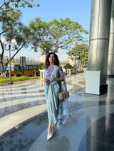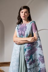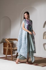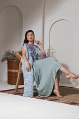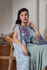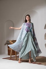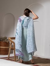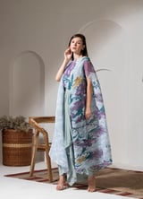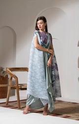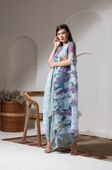 Moon Light Blue Flower Print Kaftan & Dhoti Set