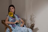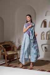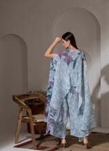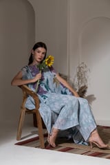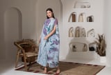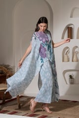 Moon Light Blue Flower Print Kaftan & Pant Set