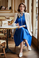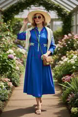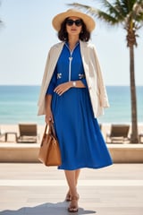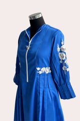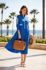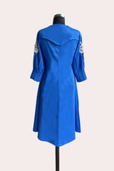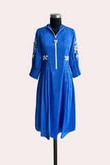 Cobalt Blue Zip-Front Fit & Flare Midi Dress