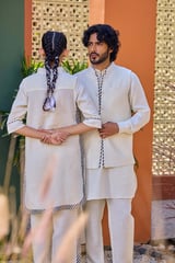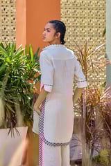 Off White Linen Kurti and Wide-Leg Pants Co-ord Set