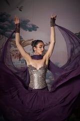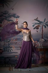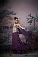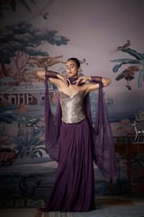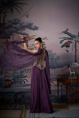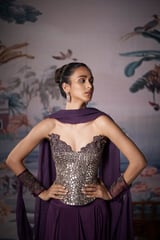 Purple Mirror-Work Corset Lehenga Set with Dupatta