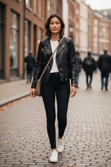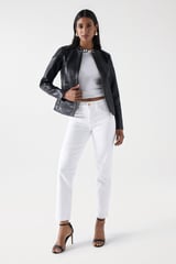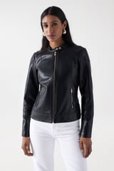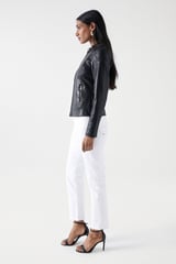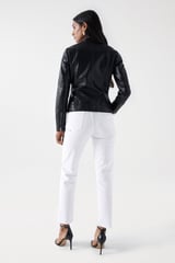 Black Leather-Effect Slim Fit Zip-Up Jacket