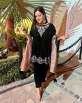 Black Peacock Velvet Short Kurta With Straight Pants - Set of 2