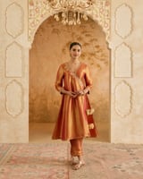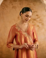 Rosy Zari Tissue Angrakha with Narrow Pants - Set of 2