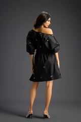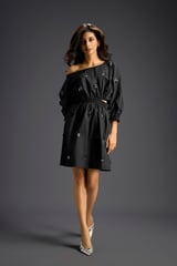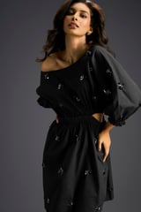 Black One-Shoulder Cotton Dress with Butterfly Embellishments