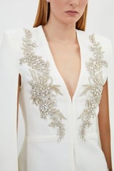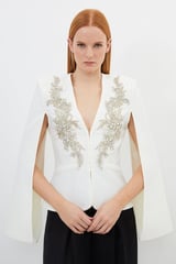 Cream Embellished Cape Sleeve Slim Fit Jacket