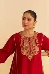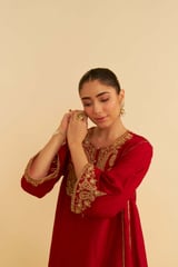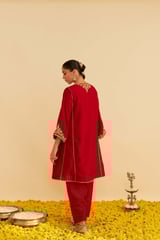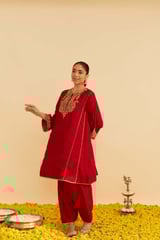 Deep Red Upada Silk Embroidered Kurta Set with Salwar