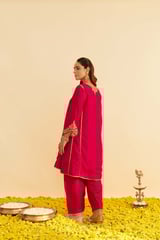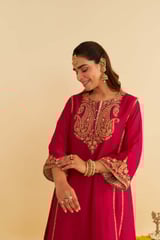 Hotpink Embroidered Chauga Kurta Set with Salwar