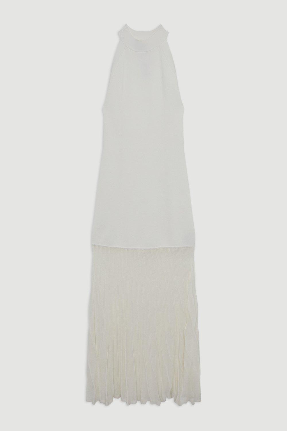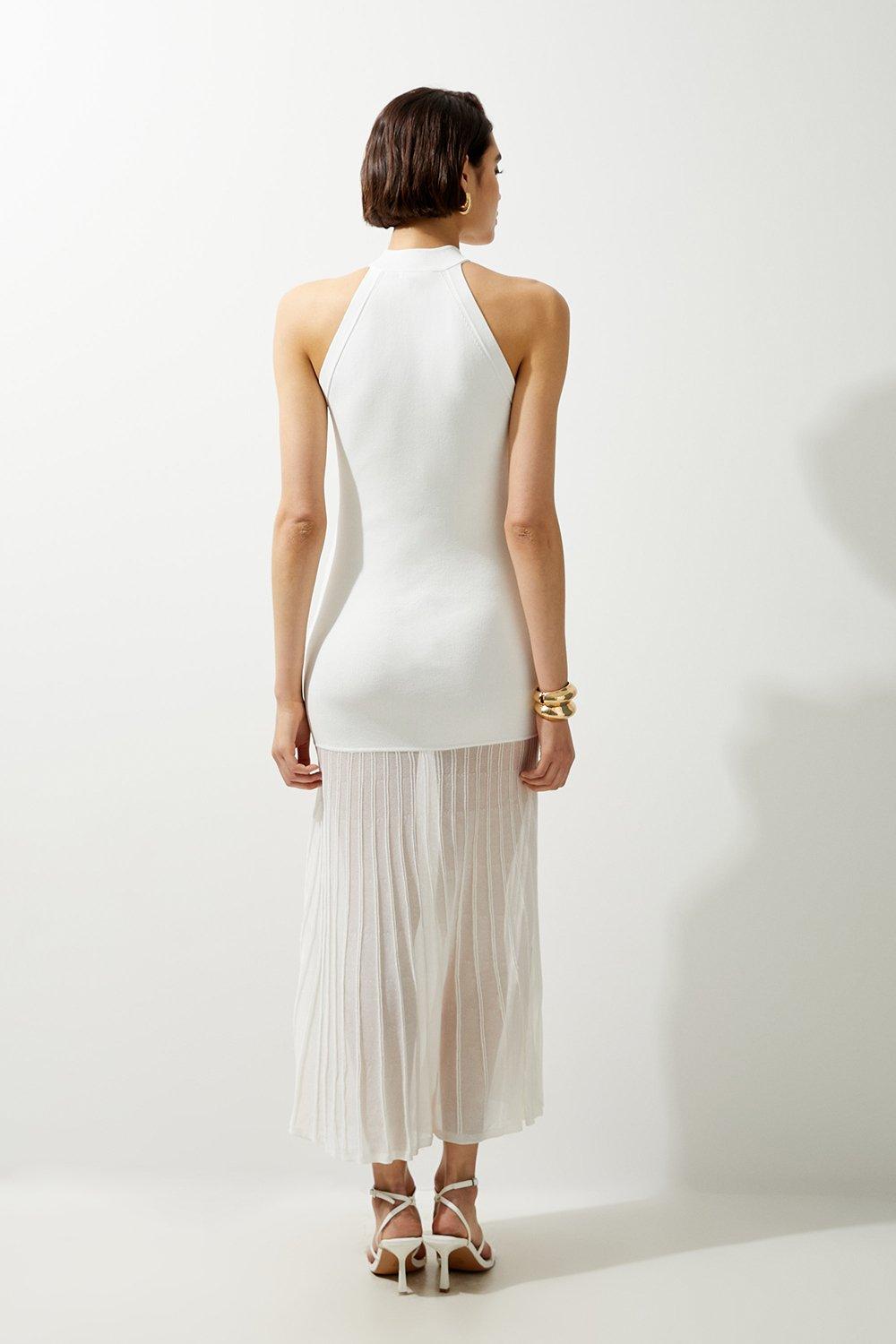 Viscose Blend Knit Halter Neck Sheer Skirt Midaxi Dress