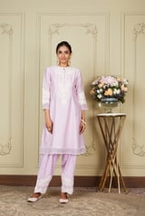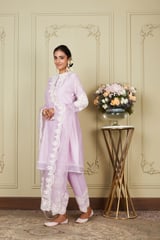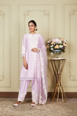 Periwinkle A-Line Embroidered Kurta Set with Dupatta