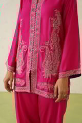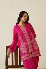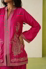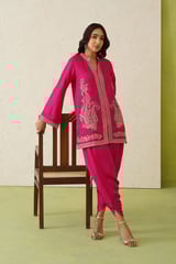 Hot Pink Embroidered Kurta and Dhoti Co-ord Set