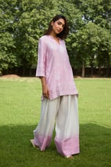 Pink and Cream Embroidered Farshi Pants Co-ord Set