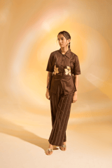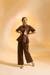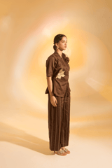 Brown Cotton Satin Embroidered Shirt and Pants Co-ord Set