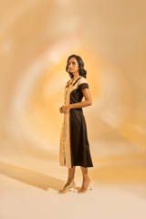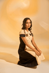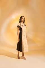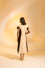 Cream and Black Colorblocked Button-Front Shirt Dress