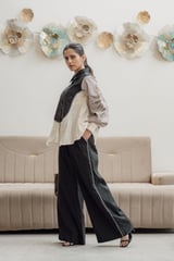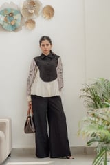Black Colorblock Shirt and Wide-Leg Pants Co-ord Set