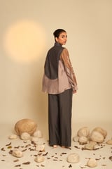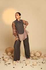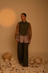 Neutral Colorblock Shirt and Wide-Leg Pants Co-ord Set