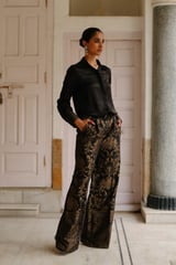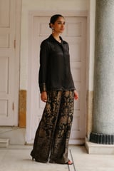Black Modal Shirt and Brocade Wide-Leg Pants Co-ord Set