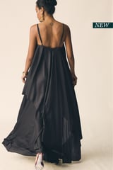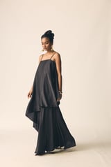 Black Satin Strappy Top and Maxi Skirt Co-ord Set