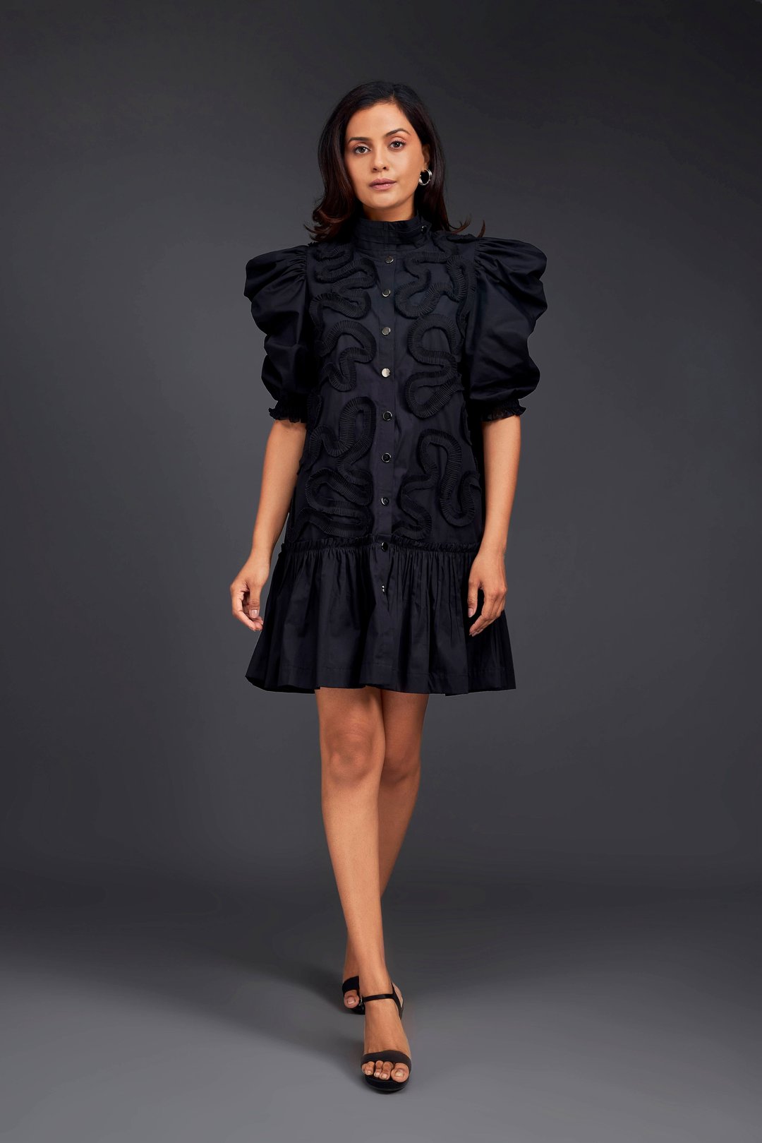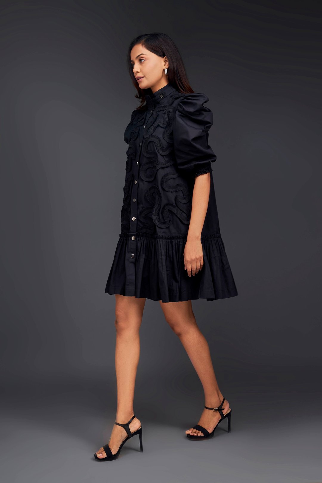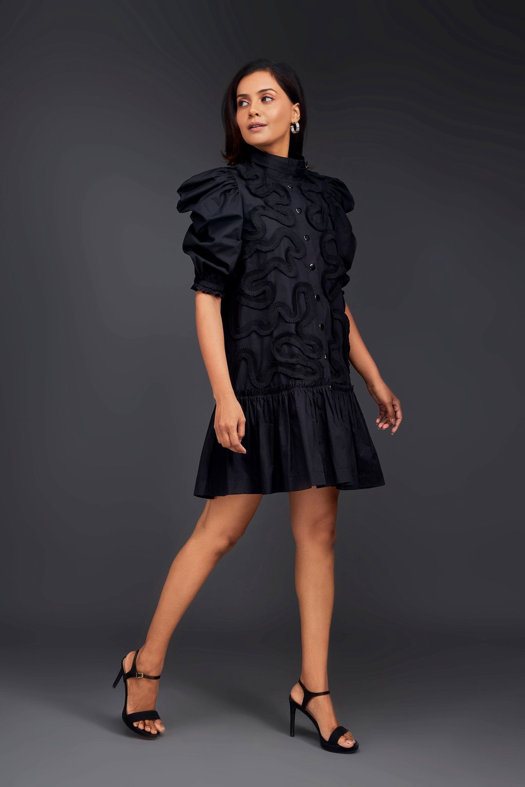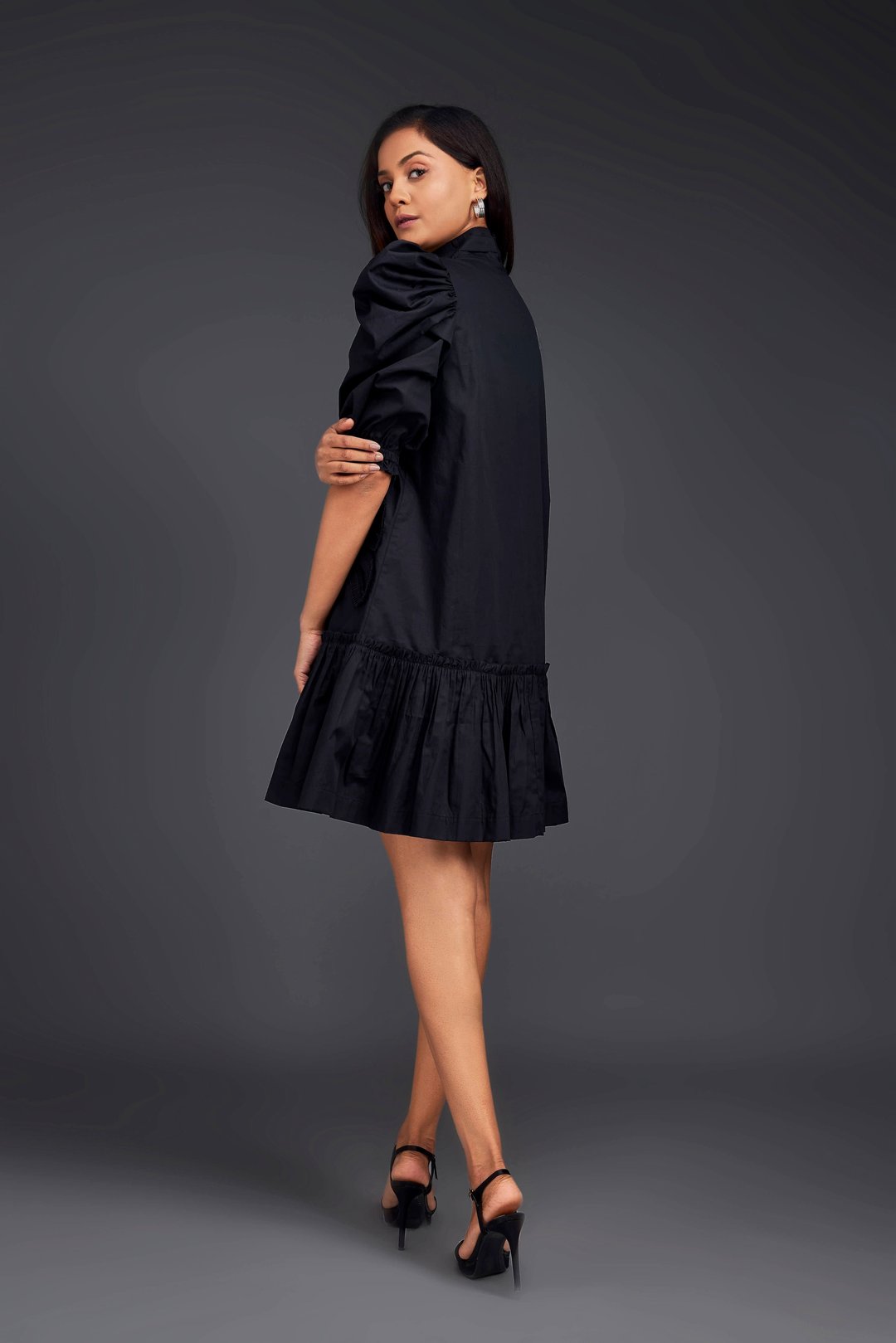 Dress with Gathered Bottom & Pleated Frill Detailing All Over Front