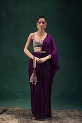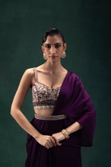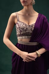 Royal Purple Embroidered Two-Piece Draped Saree Set