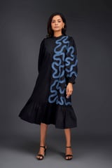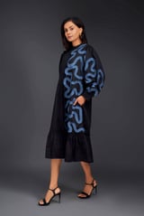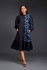 SHIRT DRESS WITH PLEATED FRILL DETAILING ON ONE SIDE