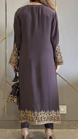 Grey Crepe Baroque Phiran With Churidaar And Potli