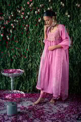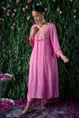Embroidered Crushed Silk Kurta Set
