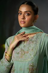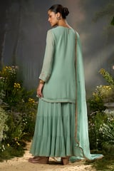 Granite Green Zari-Embroidered Sharara Kurta Set