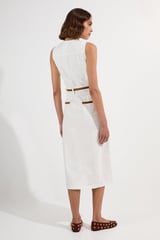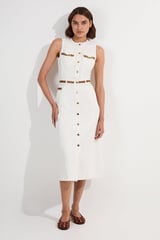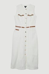 Ivory Denim Button-Through Belted Midi Dress