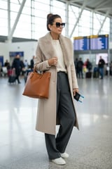 Medium Beige Longline Coat with Faux-Fur Collar