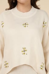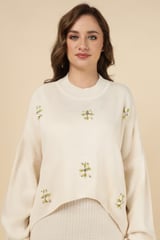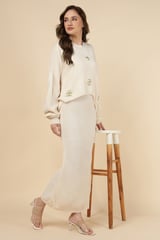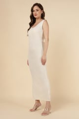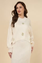 Ivory Rib-Knit Maxi Dress with Embellished Sweater