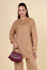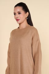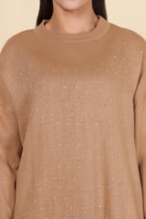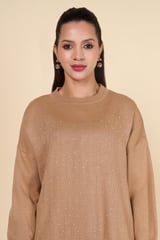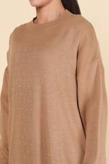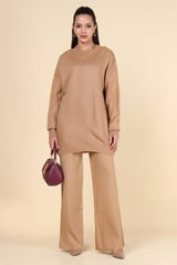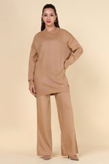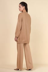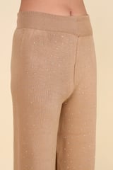 Brown Studded Knit Top and Wide-Leg Pants Co-ord Set