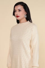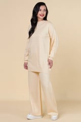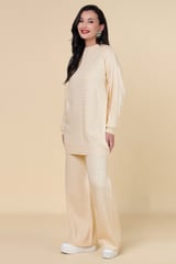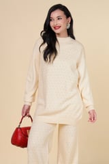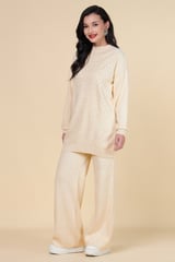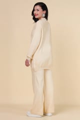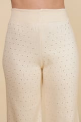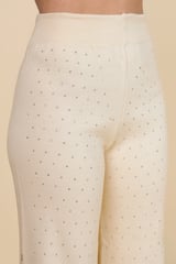 Ivory Embellished Knit Co-ord Set with Wide-Leg Pants