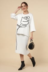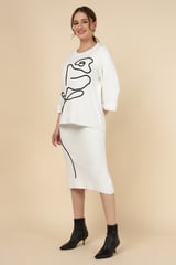 White Knit Top and Midi Pencil Skirt Co-ord Set