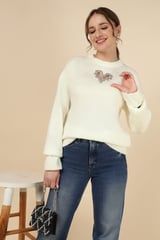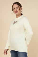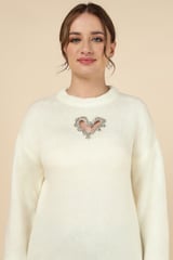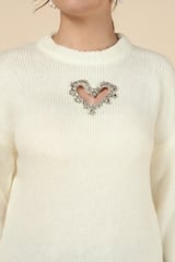 White Rib-Knit Pullover Sweater with Heart Cut-Out