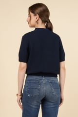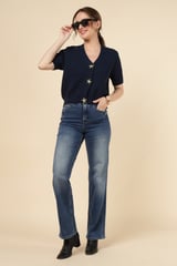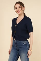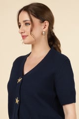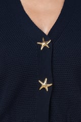 Navy V-Neck Starfish Button Knit Cardigan