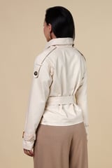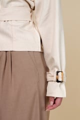 Beige Tailored Belted Jacket with Crochet Shoulder Panels