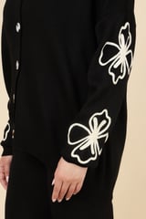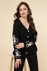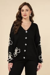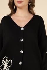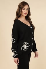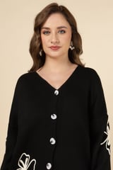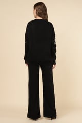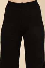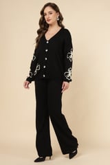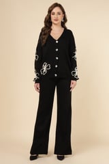 Black Knit Button-Front Top and Wide-Leg Pants Co-ord Set
