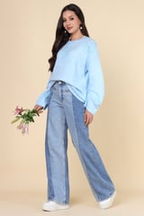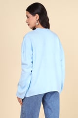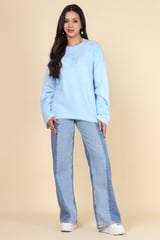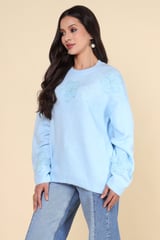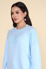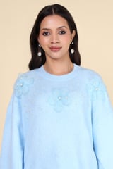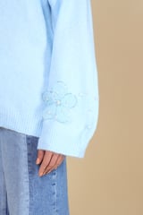 Light Blue Appliqué and Pearl-Detail Pullover Sweater