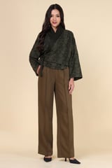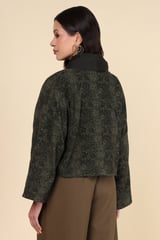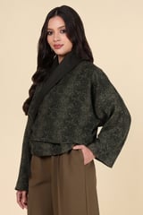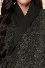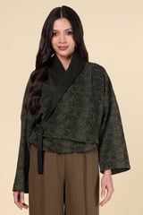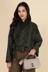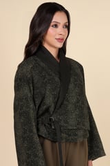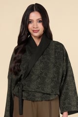 Black/Khakhi Cropped Wrap Jacket with Tie Belt
