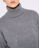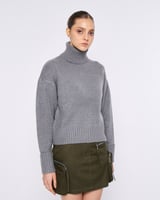 Grey Turtleneck Pullover Sweater with Folded Cuffs