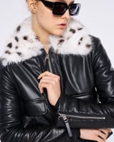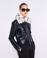 Black Faux Leather Bomber Jacket with Faux Fur Collar