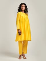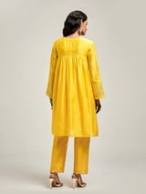 Short Embroidered Yoke Kurta With Gathers And Pant