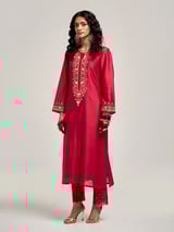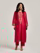Embroidered Kurta With Placket And Pant
