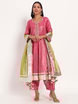 Rose Radiance Tissue Anarkali Set