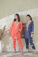 Orange Bandhej Embroidered Co-ord