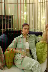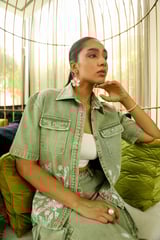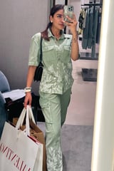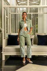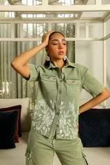 Green Cotton Twill Shirt and Cargo Pants Co-ord Set